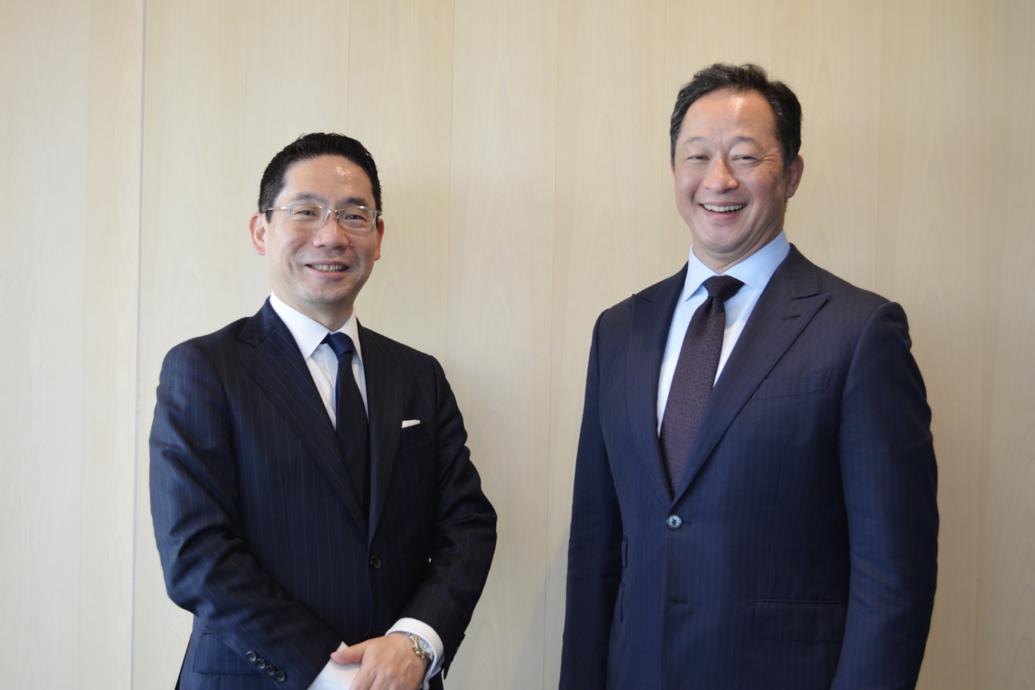 鹿山真吾主席研究員(左)と北海道バレービジョン協議会の和田義明顧問(右)