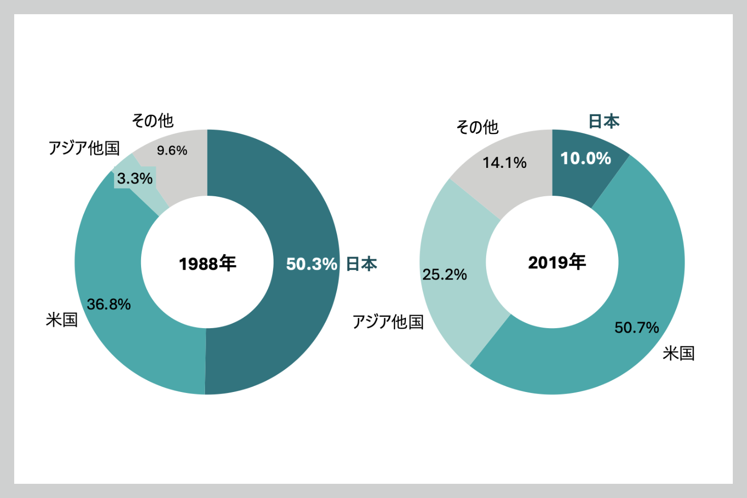 図表1 半導体売上高の世界シェア(1988年、2019年比較)
